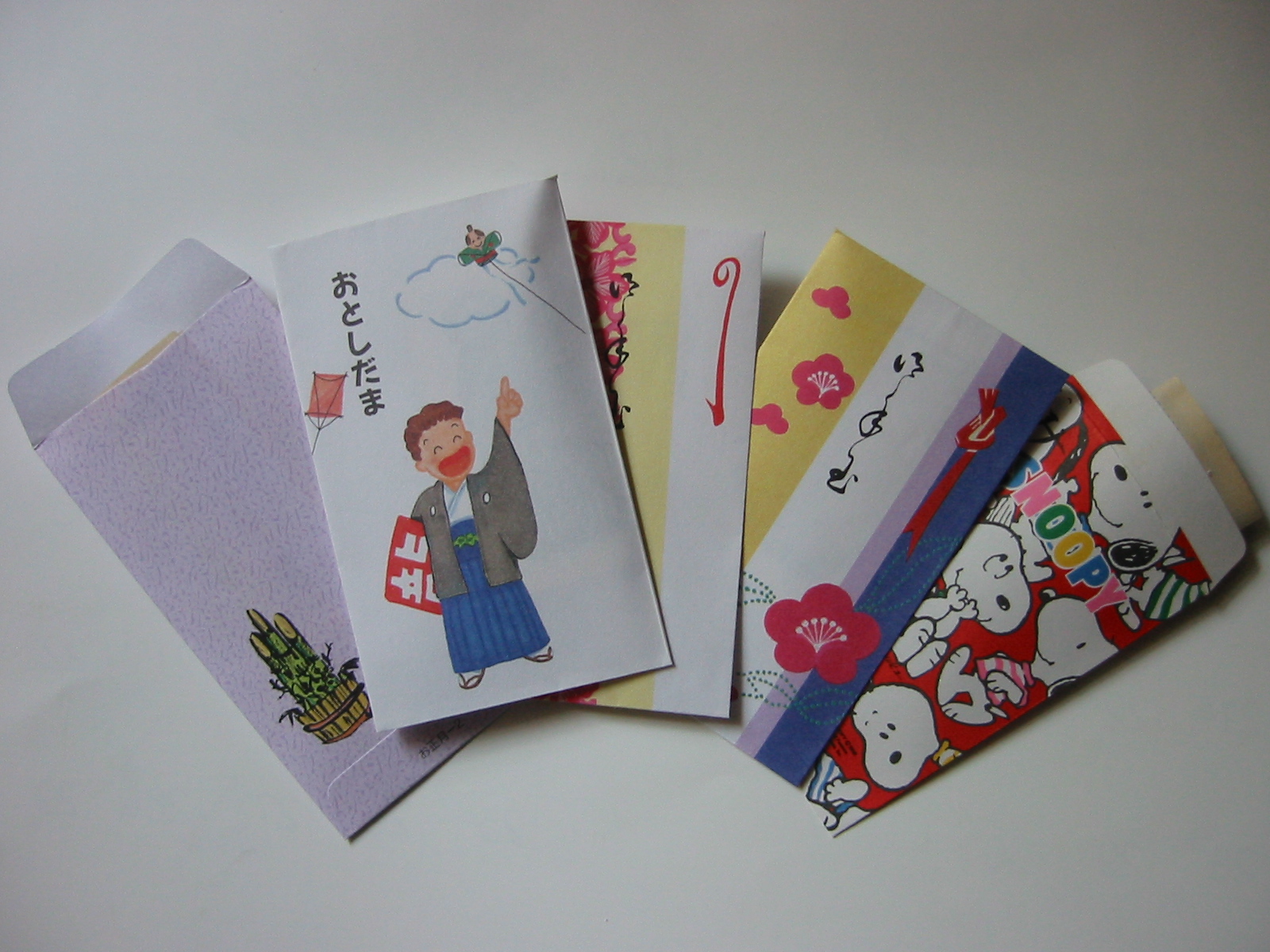 Otoshidama. Otoshidama adalah tradisi memberikan uang kepada anak-anak kecil saat tahun baru. Uang yang diberikan dimasukkan ke dalam amplop yang disebut pochibukuro. Banyak keluarga pergi berbelanja pada hari tahun baru dan menjadi kesempatan bagi anak-anak menggunakan uang mereka untuk membeli mainan, permen dan lain sebagainya.
