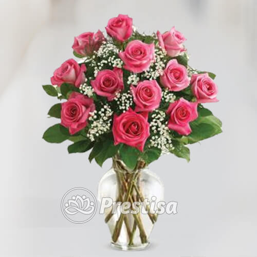 Table flower arranged to bright up your room. This beautiful arrangement consist of roses and fillers
