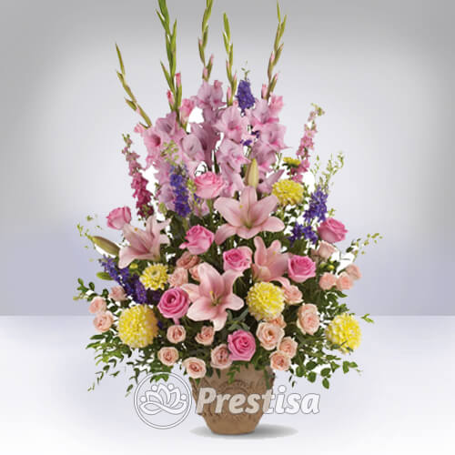 Table flower arranged to bright up your room. This beautiful arrangement consist of roses and fillers