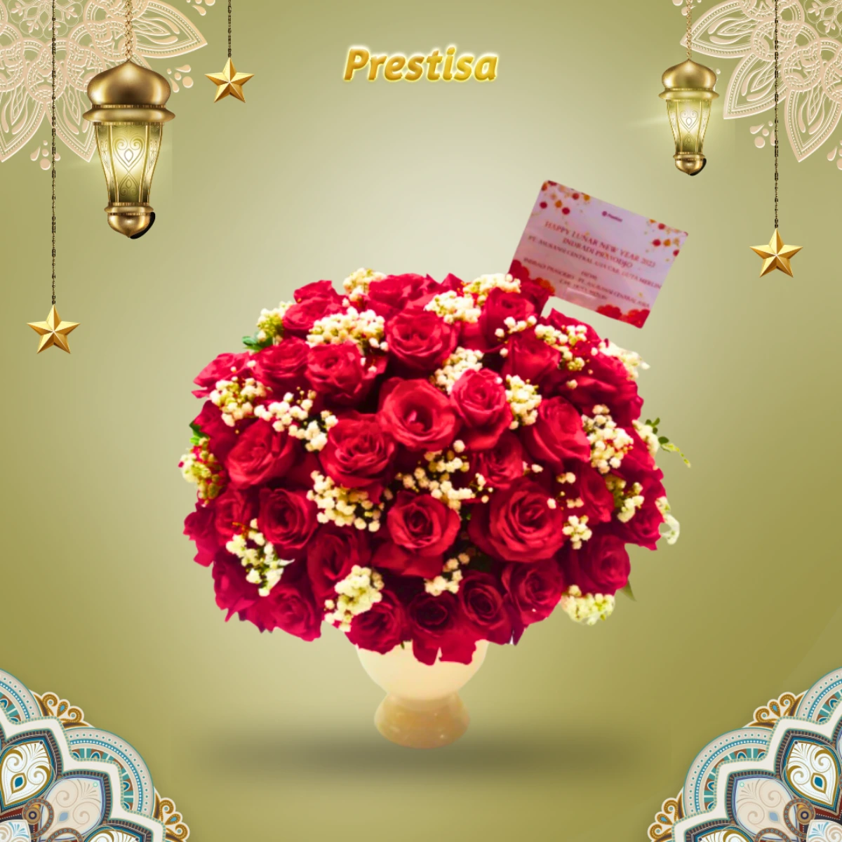 Material: Bunga mawar merah dan baby breath