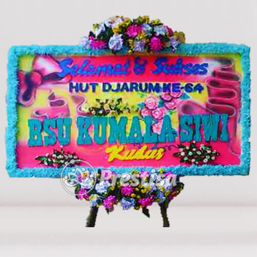 Karangan Bunga papan ucapan selamat&sukses ini cocok untuk diberikan kepada orang yang sedang berbahagia misalnya telah lulus dari kuliah/sekolah atau acara pernikahan.Bunga papan ucapan selamat&sukses di kudus ini bagus karena terdiri dari rangakaian bunga-bunga dan warna-warni pada bunga. Pada Bunga papan ucapan selamat&sukses ini menggunakan 2 dasar warna yaitu warna kuning, dan pink. Warna nya berbeda tetapi mengandung arti sama yaitu mengucapkan selamat. lama pekerjaan kerangka Bunga papan ucapan selamat&sukses ini berkisar antara 3 sampai 4 jam. selain Bunga papan ucapan selamat&sukses. Toko Bunga Prestisa juga menyediakan bunga papan yang lain nya seperti bunga papan duka cita.