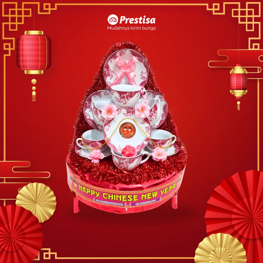 – 6 set cangkir dan tatakannya lengkap dengan ornamen imlek