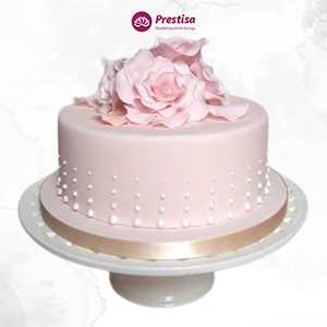 - Dilapisi Fondant Icing berwarna pink dengan hiasan bunga yang cantik di atasnya