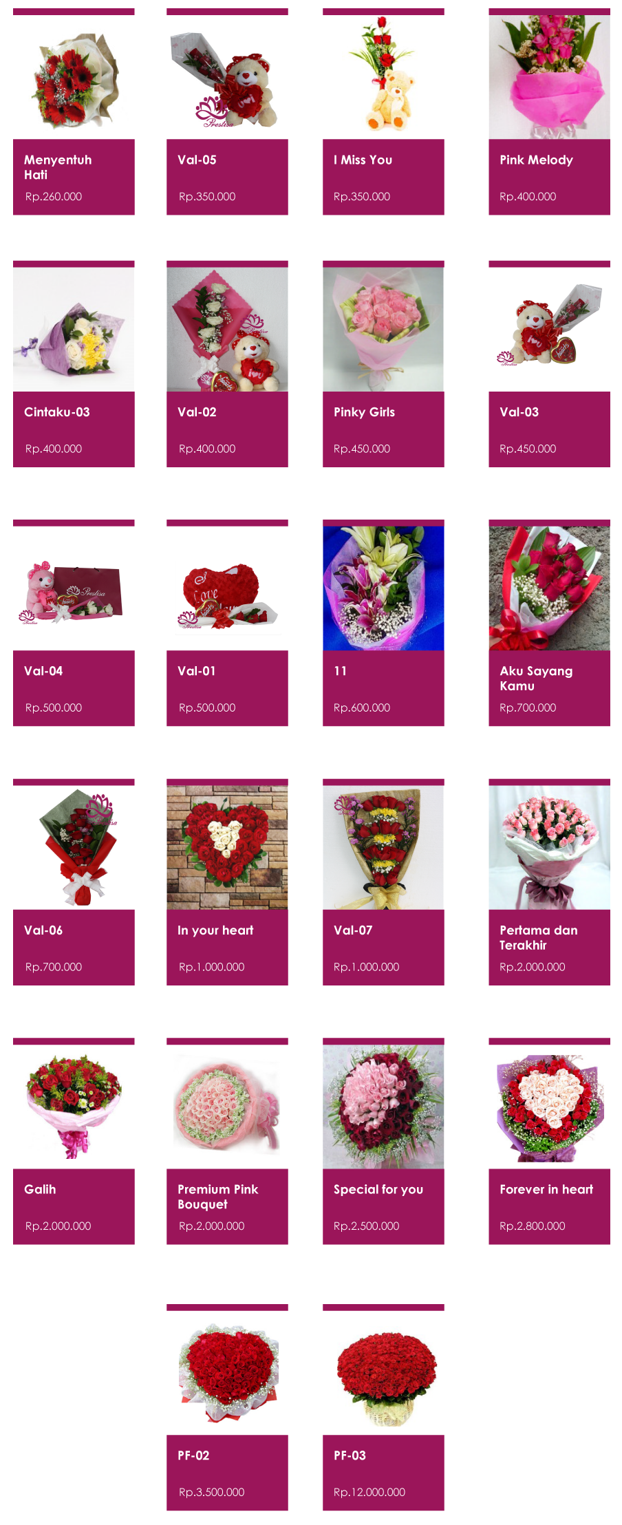 Toko bunga  prestisa.com  menyediakan berbagai macam macam karangan bunga toko bunga prestisa.com siap mealayani pemesanan dan pembuatan , seperti . bunga papan duka cita , bunga papan wedding,  bunga papan ucapan selamat , hand bouquet ,, bunga meja , standing flower dan lain lainnya .   Bunga papan atau papan bunga atou di sebut flowers board,  dalam bahasa inggris bisa anda krim kan kepada  seseorang atou intansi tertentu , anda juga bisa menggungkapakan prasaan anda terhadap momen tertentu .   Dalam pekerjaan kami menggunakan bahan baru semua terutama dari krangka , spon , suyok , untuk papan bunga duka cita kami menggunakan warna , hitam , kuning, biru , hujau, untuk bunga papan wedding kami menggunkan warna terang seperti warna , merah , pink, kuning, putih, dan untuk bunga rangkayan seperti, hand bouquet, bunga meja, standing flower,  itu kami menggunakan bunga , mawar , bunga lili , bunga gerbera, bunga , krisan, dan lain lainnya , untuk kualitas bunga yang sudah terbukti karna langsung di datangkan dari perkebunan, seperti bandung, malang, bogor, dan juga pasar bunga rawa belong,  untuk waktu pengeriman kami menggunakan jasa layan antar 24 jam   untuk melihat  produk kami anda bisa langsung kunjungi website,  kami prestisa.com dan untuk area lokasi kami berada di jln merak V no. 5a perumahan  inkopol  kelurahan  jakasampurna bekasi barat, untuk pemesanan anda bisa langsung hubungi customer kami , no tlpn = 02191081616 – 082208681272 pin bb = 53ED5A80 terima kasih …………… konten bunga KB2
